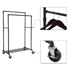 De echte modebewuste vrouw of man heeft aan de traditionele kledingkast vaak niet genoeg. Deze barst als het ware van de kledingstukken, met als extra nadeel het verlies aan overzicht. Kies daarom voor dit dubbel kledingrek waar plaats is voor allerlei outfits, inclusief schoenen!
