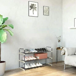 Deze prachtige houten schoenenkast biedt een ideale oplossing om je schoenen goed georganiseerd te houden.
